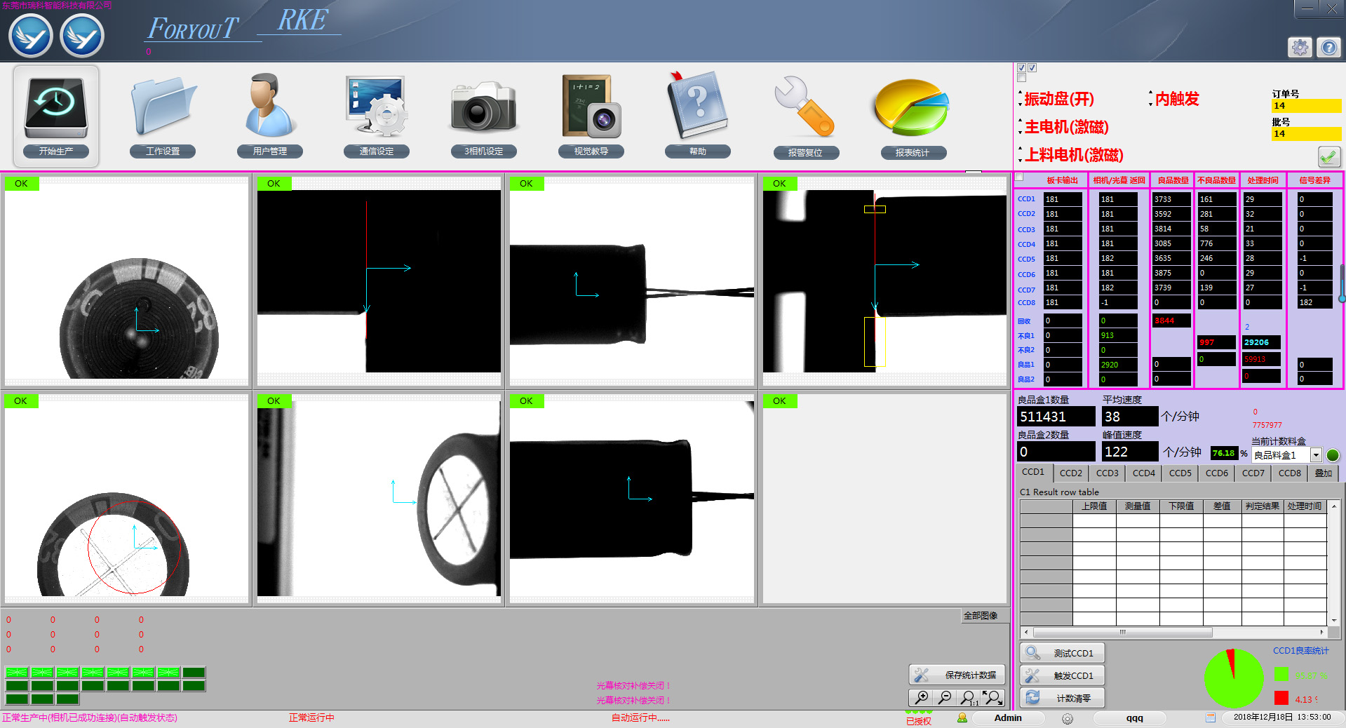 2、设备自动判断,并给出检测结果和指示,操作员取下检测后的产品,或者系统自动剔除;